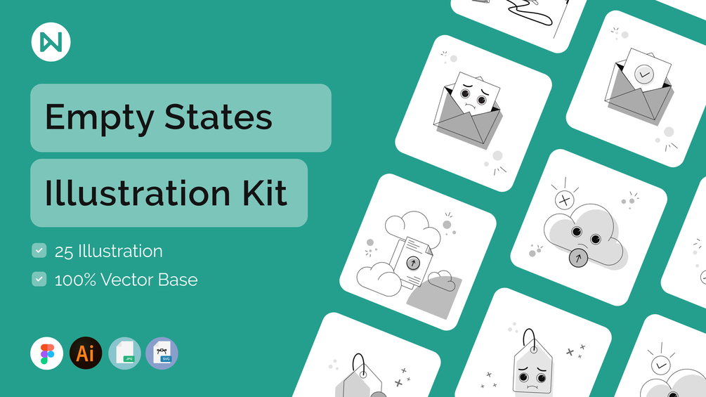 Set of 25 empty states illustrations, best for web or mobile projects.